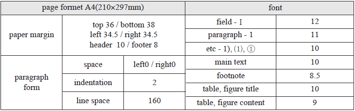4. Manuscripts should be prepared in Hangul file format, and be set to the edit form as shown below.